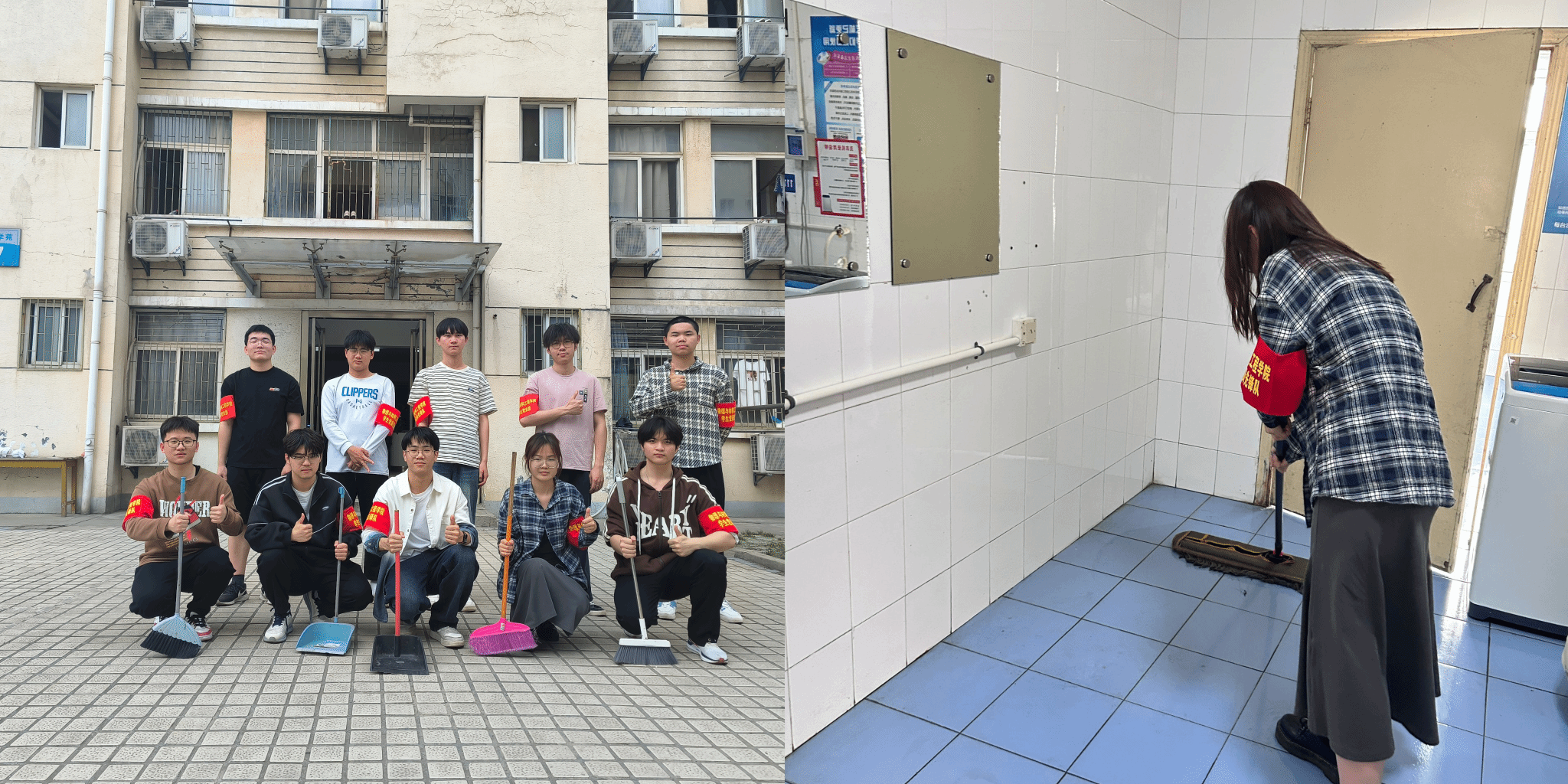 宿舍楼里,大家分工合作,以身作则,发扬不怕脏、不怕累的精神,清洁门窗,打扫地面,对宿舍楼栋公共区域进行全方位清洁,为学生营造干净整洁生活环境。