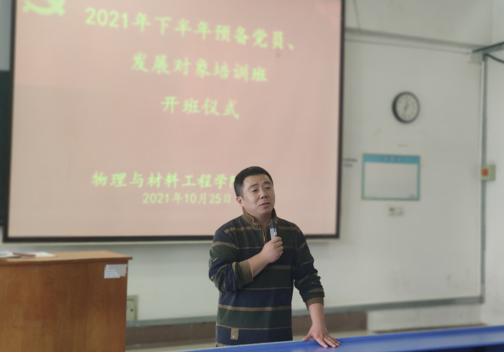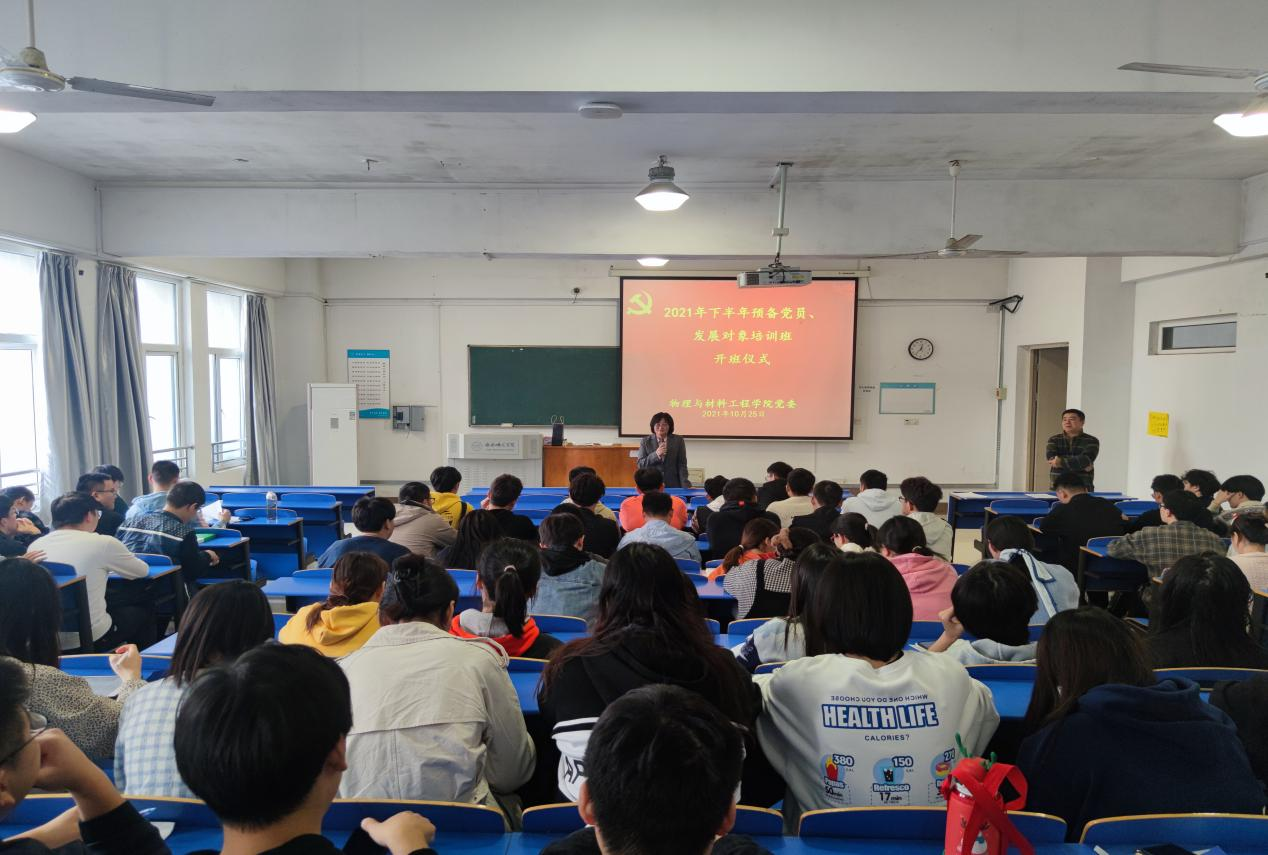 10月25日,今年会jinnianhui2021年下半年预备党员、发展对象培训班开班仪式在逸夫楼A106隆重举行,学院党委书记唐洁出席会议并讲话。学生党支部全体党员、预备党员及发展对象参加,仪式由学院党委副书记吴震主持。