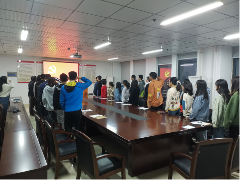大会第二项议程为入党宣誓仪式。在在领誓人吴梦云的带领下,本年度新发展的13名学生党员和22名老党员庄严宣誓,激励自己不忘共产党人初心,表达永远忠诚于党的坚定决心。