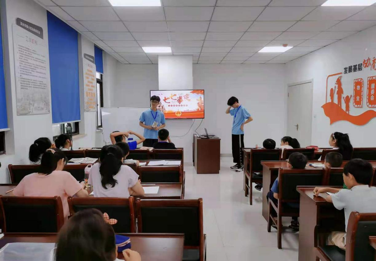 开班当天,恰逢“七七事变”84周年,结合正在开展的党史学习教育,“小先生“们以“走进七七事变,培养爱国精神”开始了行知学堂第一课,带领小学员们重温历史,培育爱国精神。