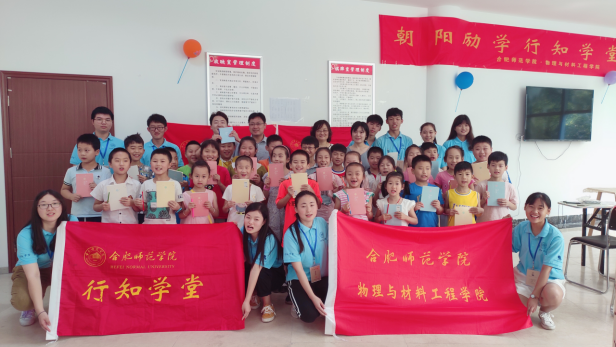 7月10日,今年会jinnianhui党总支书记唐洁、团总支负责人吴梦云、指导教师马元、孙苗一行冒着酷暑先后来到南艳湖社区和卫星社区,看望在那里开办行知学堂的“小先生”和小学员们,并为小学员们赠送了学习用品。