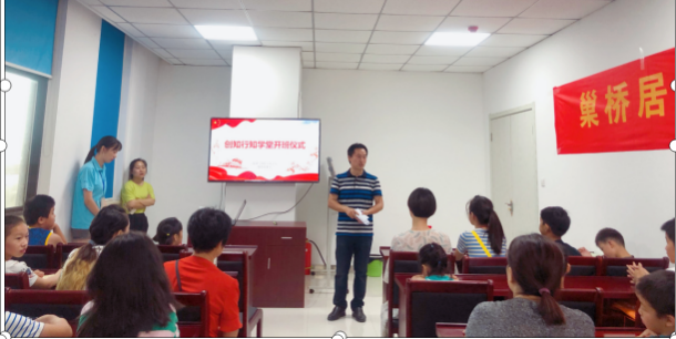 巢桥居委会妇联主任张莉丽宣布“创知行知学堂”正式开班,她对行知学堂“小先生”们表示了热烈的欢迎和衷心的感谢。随后,指导教师李冬鹏向大家介绍了我校“行知学堂”的历史、已取得的成果以及“创知行知学堂”的课程安排。李老师给“小先生”们提出三点要求,一是要求“小先生”们关心爱护每一个小学员,让家长放心,二是要求“小先生”们加强与居委会以及家长的沟通交流,共同促进学堂的工作,三是要求“小先生”们将安全放在第一位,密切重视自身安全和小学员的安全。