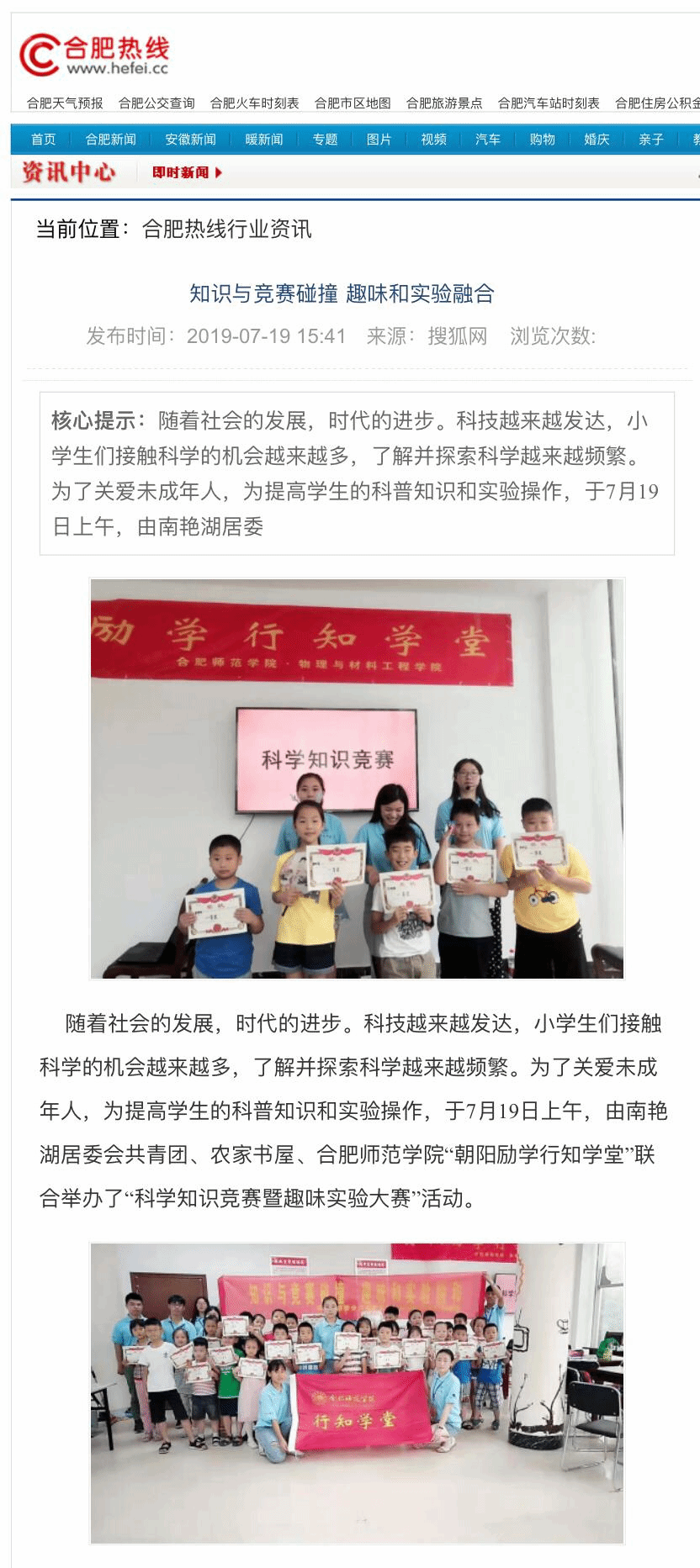 7月19日,搜狐网、合肥热线对我院今年会jinnianhui南艳湖居委会“朝阳励学行知学堂”进行了报道。(今年会jinnianhui)