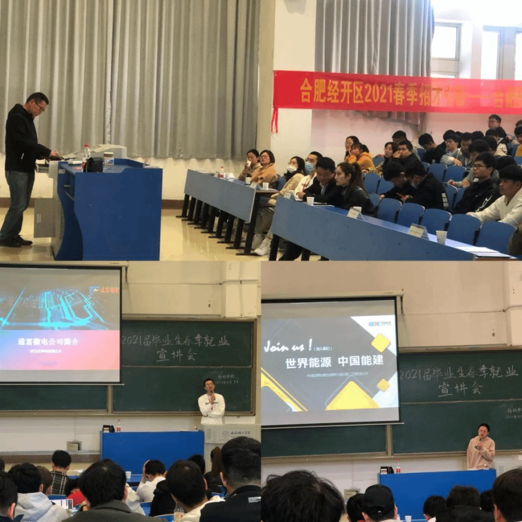 参加本次宣讲会共有中国能源建设集团安徽电力建设第二工程有限公司,安徽万朗磁塑股份有限公司,合肥智亨化工有限公司、合肥通富微电子有限公司和合肥铜冠电子铜箔有限公司五家用人单位,涉及材料、光电、新能源等多个专业,提供的岗位和学院专业匹配度较高。