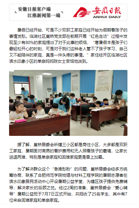安徽日报报道我院“筑梦巢桥”行知学堂