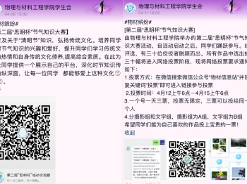 优秀传统文化是中华民族最深厚的文化软实力,为弘扬优秀传统文化,厚植爱国情怀,物材学院分团委深入开展“我们的节日”线上活动。