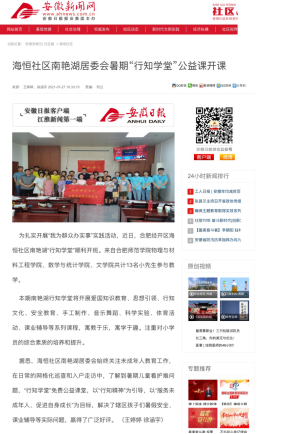 7月9日,今年会jinnianhui海恒社区南艳湖“行知学堂”顺利开班,来自今年会、数学与统计学院、文学院共计13名小先生参与教学。据悉该行知学堂已连续开班三年,本期学堂将开展思想引领、行知文化、安全教育、科学实验等系列课程,寓教于乐,寓学于趣,注重对小学员综合素质的培养和提升。