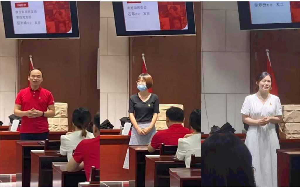 7月17日,“长夏乐行”行知学堂开班仪式正式启动,行知学堂指导教师吴梦云、南艳湖居委会书记石琴、联宝科技研发部第四党支部书记夏利峰分别代表三方发言并对三方进一步加强合作达成共识。