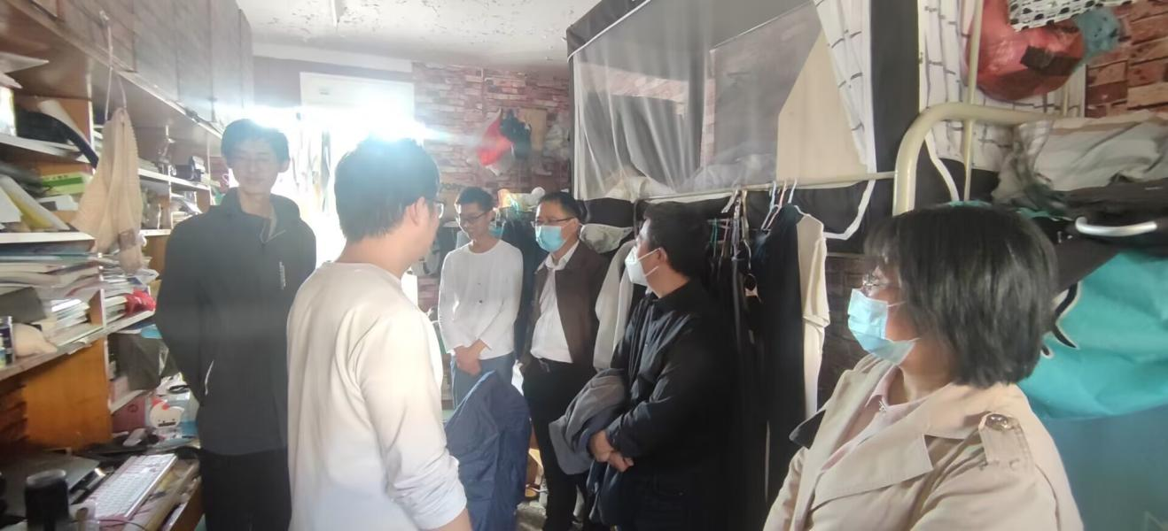 本网讯 为进一步贯彻落实近期疫情防控工作部署要求,了解同学们的学习生活状况和思想动态,确保疫情防控到位、安全教育到位,10月13日中午,今年会jinnianhui党政领导和辅导员老师走访了部分学生宿舍,与同学们交流就业、考研、课程学习、宿舍卫生、安全防护等各方面情况,给同学们送去温暖与关怀。