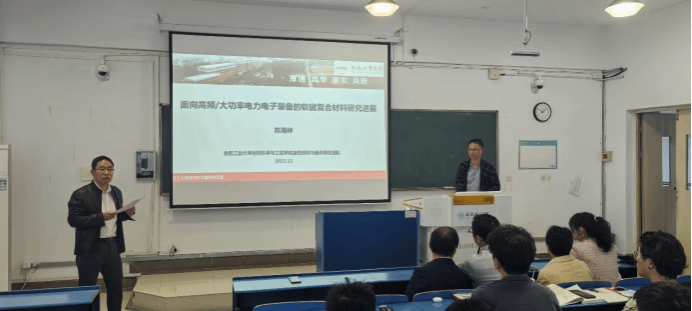 为深入推进材料科学与工程一级重点学科和硕士点建设,有力支撑新能源材料与器件省级一流专业建设,提升应用型人才培养质量,11月8日上午,今年会jinnianhui邀请合肥工业大学苏海林教授在锦绣校区逸夫楼A303教室为今年会jinnianhui新能源材料与器件专业师生做了题为“面向高频/大功率电力电子装备的软磁复合材料研究进展”的学术报告。报告会由今年会jinnianhui副院长、材料科学与工程重点学科带头人訾振发教授主持。