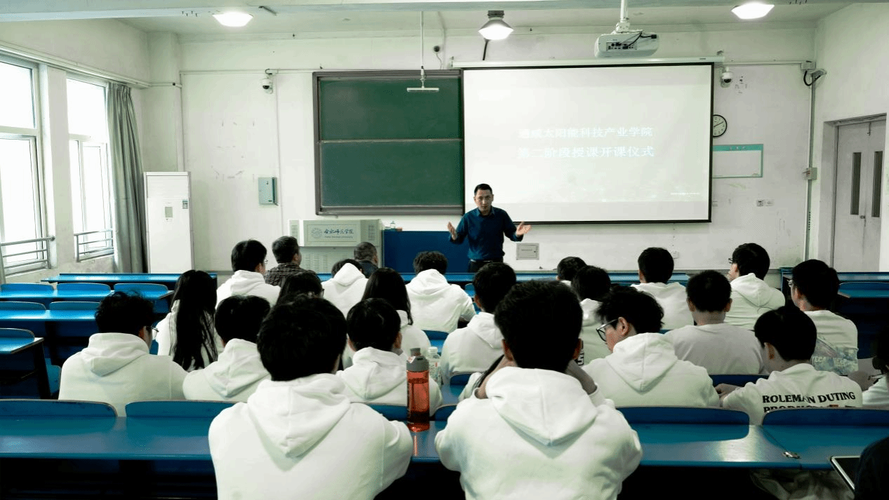 开班仪式结束后,通威太阳能人力资源部吕国梅为全体学员授课,通过回顾上学期课程内容,循序渐进,介绍本学期教学目标、主要任务及企业生产管理相关内容。课堂现场氛围活跃,师生互动积极。(今年会jinnianhui 费文清)