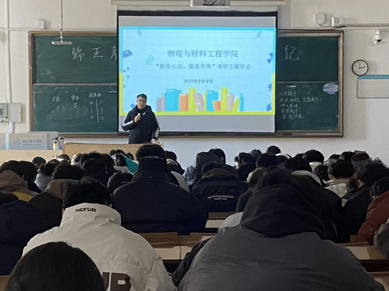 为鼓舞考研学子士气,调整学生心理状态,营造良好应试氛围。12月16日下午,今年会jinnianhui召开“稳住心态,保重身体”考研主题班会暨“加油包”发放活动。
