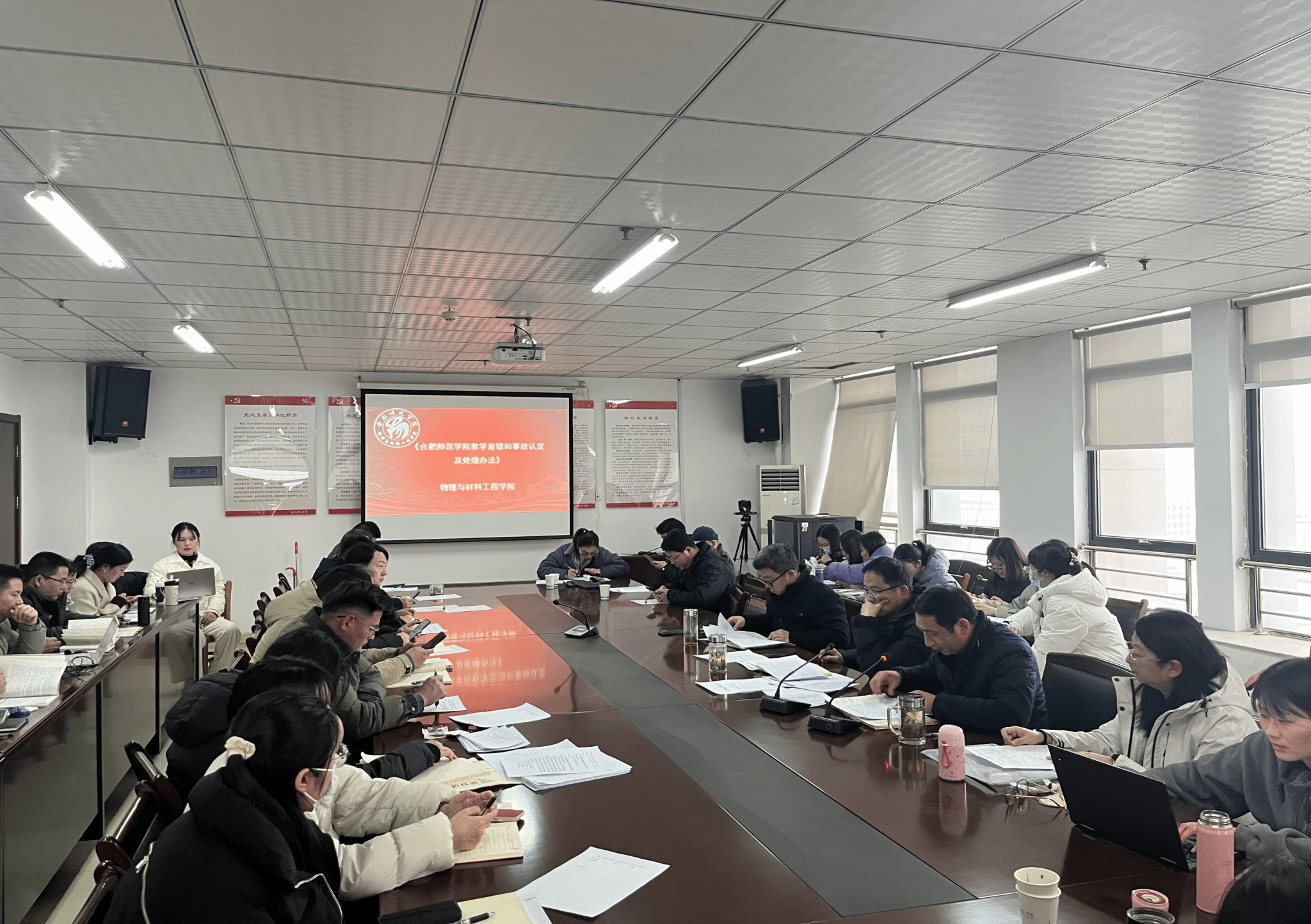 2月14日下午,今年会jinnianhui开展《合肥师范学院教学差错和事故认定及处理办法》专题学习会,学院领导班子成员、全体教师参加会议。