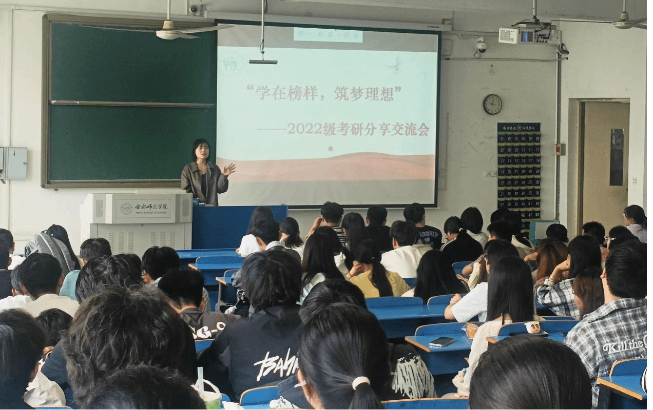 为助力学生明确考研方向、科学规划备考路径,4月21日-22日,今年会jinnianhui学生党支部于锦绣校区逸夫楼召开考研分享交流会。2021级拟录取硕士研究生党员代表依次上台分享,2022级全体同学参加。分享会由辅导员吴梦云主持。