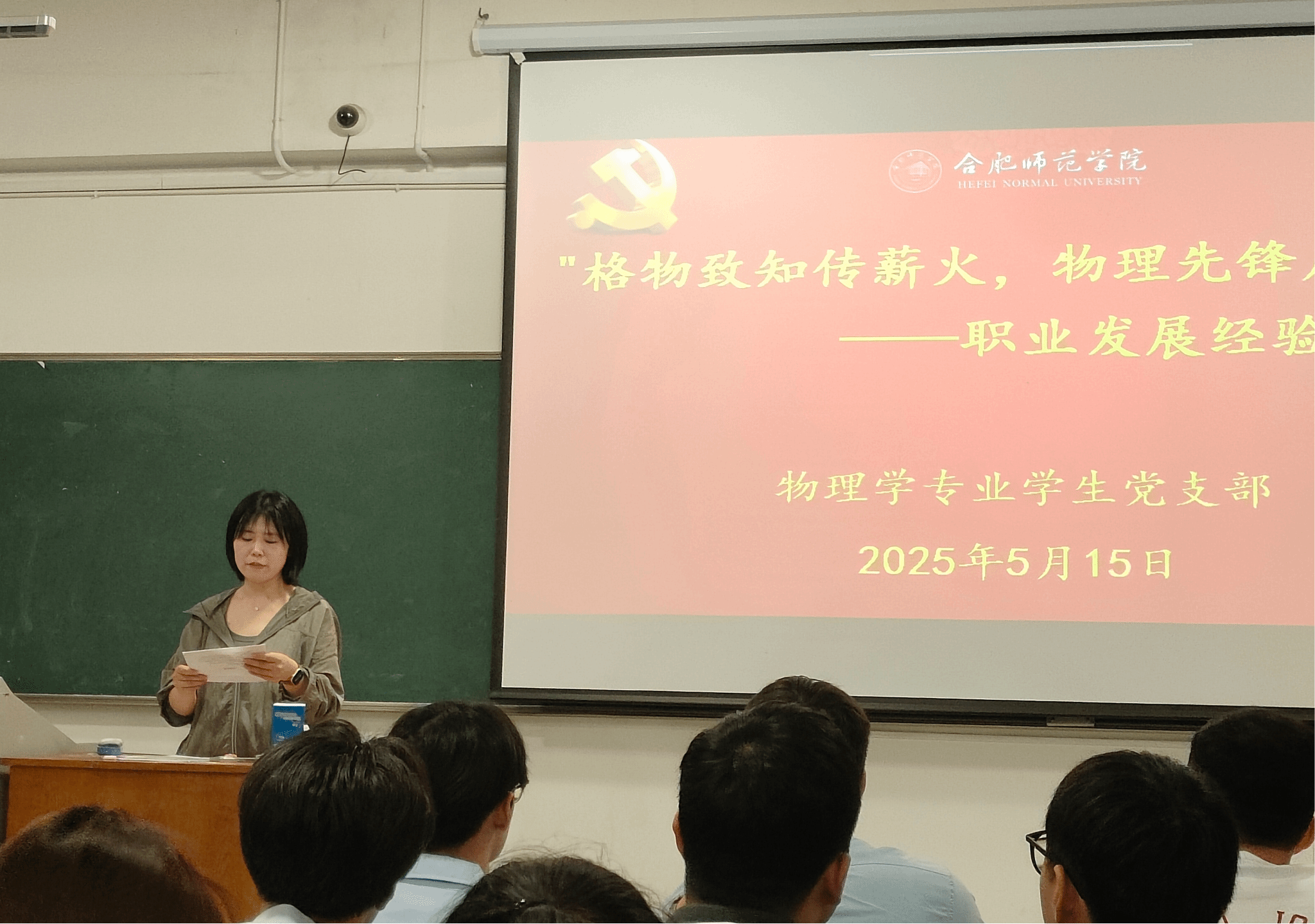 为发挥学生党员的先锋模范作用,搭建朋辈互助成长平台,5月15日晚,今年会jinnianhui物理学专业学生党支部在逸夫楼A106教室举办"格物致知传薪火,物理先锋启新程"职业发展经验分享会。2022级物理学(师范)专业学生参加,会议由物理学专业学生党支部书记吴梦云主持。
