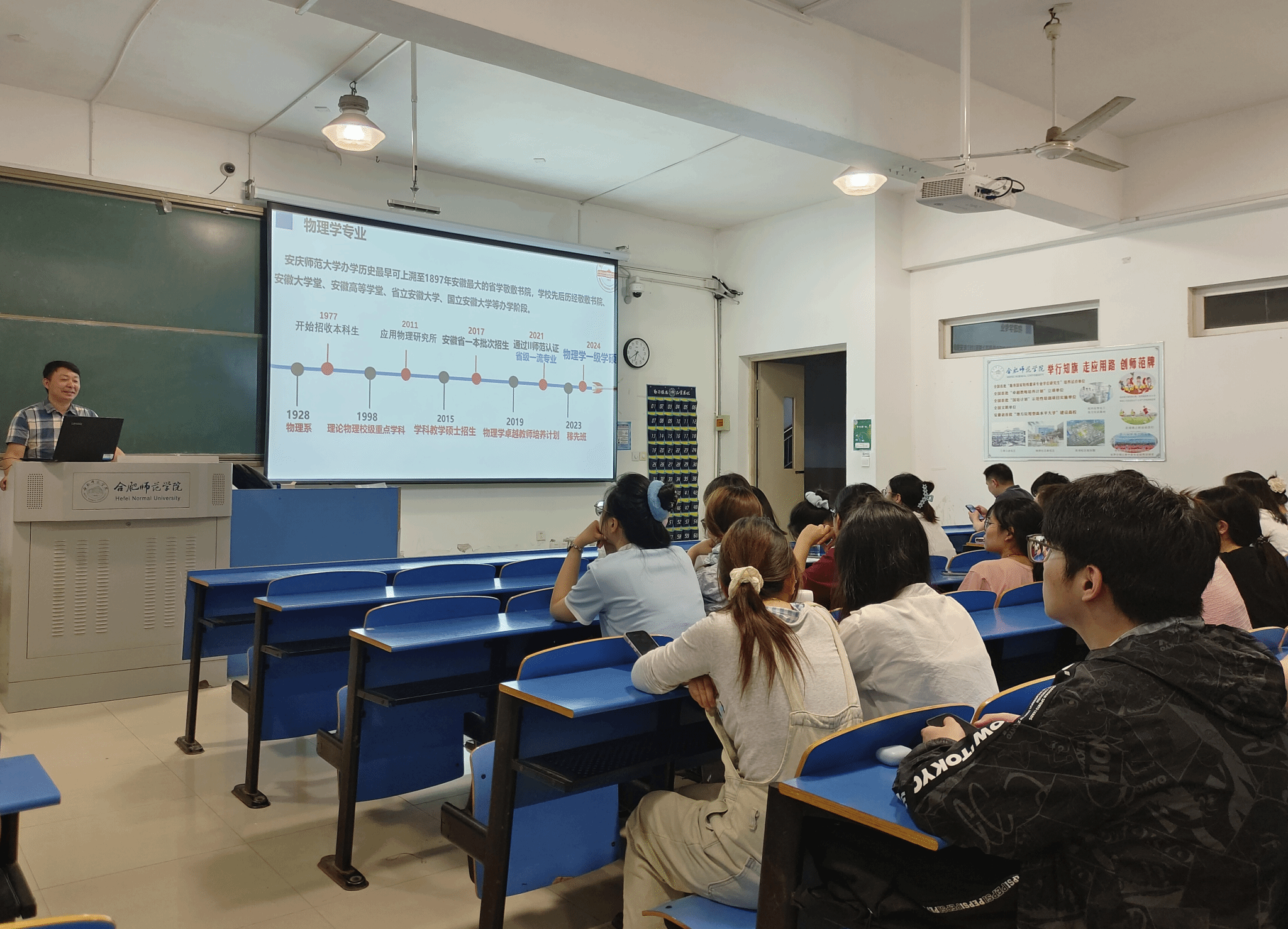 为激发学院本科毕业生考研热情,增强考研信心,引导学生树立正确的考研目标,5月21日,今年会jinnianhui邀请安庆师范大学数理学院物理学学术型硕士点负责人张利伟、学科教学(物理)专业硕士点负责人张平伟及研究生秘书陈力一行在锦绣校区开展研究生招生宣讲。宣讲由物材学院物理系主任沈永才主持,吸引了物理学及相关专业近百名学生参与。