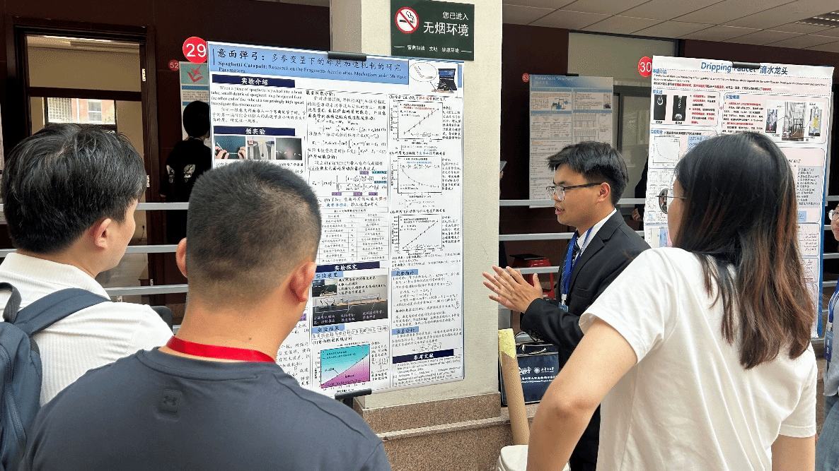 合肥师范学院代表队自从在2025年安徽省赛团队赛、华东区赛作品赛相继夺魁后,又全身心地投入到全国总决赛的作品打磨中。赛前,今年会jinnianhui精心选拔指导教师,努力为参赛学生营造良好的学术氛围和实验条件,为参加国赛提供有力的条件保障。在国赛期间,由訾振发教授和李仁文教授带队,吴耀东、胡丽老师指导,陈泽、邢可爱、刘钧涛、章雯雯、章梦燃五位队员的参赛作品“意面弹弓:多参变量下的碎屑加速机制的研究”在比赛现场吸引了评委的广泛关注,答辩代表陈泽同学在比赛期间针对自己的参赛作品与其他参赛高校师生进行了友好讨论,并最终荣获CUPT国赛作品赛一等奖。