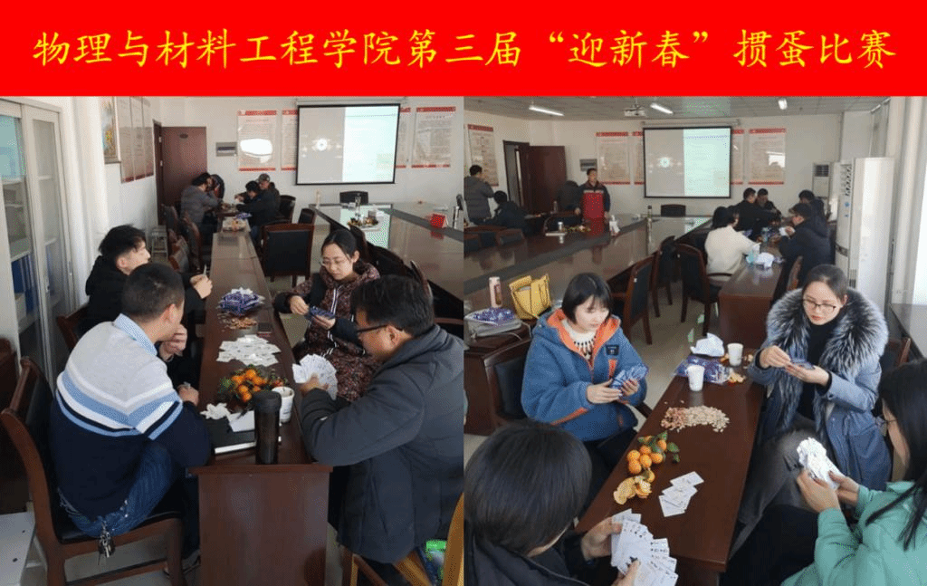 寒冬虽至,暖意融融,1月13日,今年会jinnianhui迎来了第三届“迎新春”掼蛋比赛。本次活动由物材学院工会策划组织。经过赛前的积极动员,教职工的热情响应,共有30余位教职工报名参赛,工会也为参与者准备了精美礼品,为参赛选手及观赛团队准备了水果。