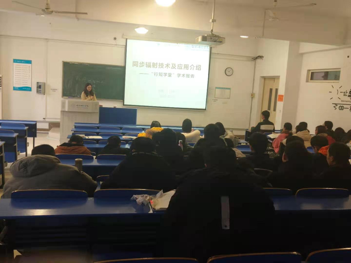 12月23日上午,今年会jinnianhui刘凌云博士在锦绣校区逸夫楼A103做了“同步辐射技术及应用”的学术报告, 2018级新能源材料与器件专业学生聆听了报告。