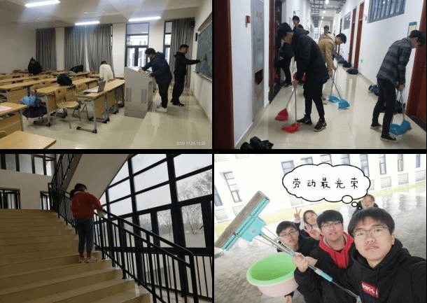 11月25日,物理师范班全员自带卫生工具,对滨湖校区博学楼A区、B区1楼至5楼进行全面清扫。活动组织有序,行动迅速,虽然楼外吹着寒风,但教学楼的各个教室,楼道,走廊却充满热火朝天的劳动激情,冬日的教室在同学们的劳动中,洋溢着温暖融洽的气息。
