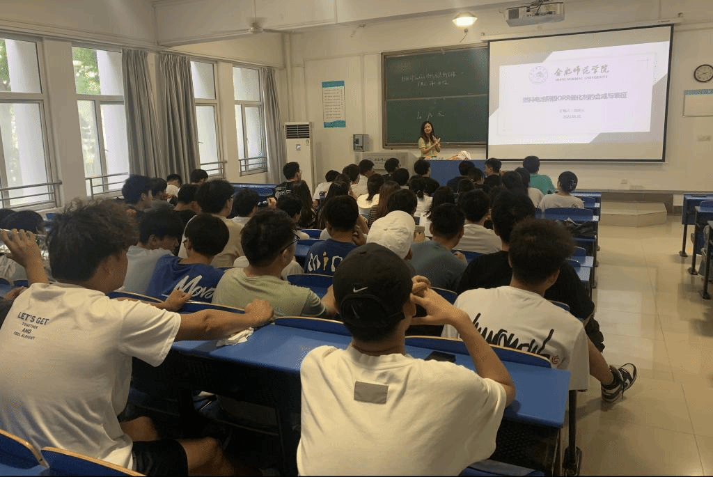 张雪倩老师报告的主题为“钼基纳米材料的制备及其电化学性能研究”,报告从国内外锂离子电池发展现状出发,就锂离子电池的未来研究趋势做了讲解,并在报告中详细介绍了锂离子电池负极材料存在的问题,分析了二硫化钼等材料存在的优势,介绍了中空纳米结构纳米材料的可控制备方法以及材料结构与电化学性能之间的构效关系,使学生对锂离子电池领域的研究进展有了深刻的认识。