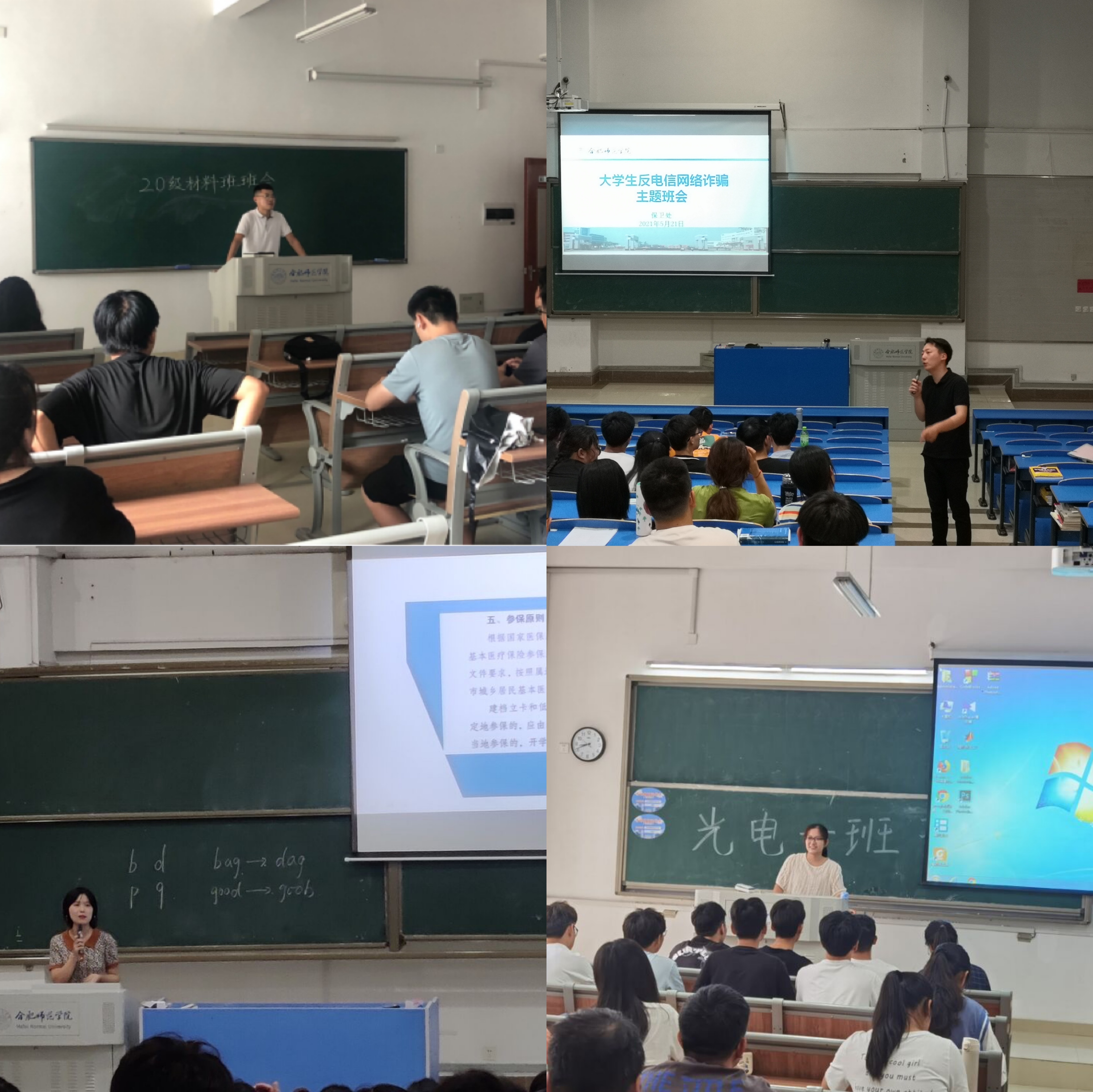 班会课上,各班班主任围绕爱国主义教育、防骗防非法贷、战“疫”教育、文明校园建设、安全教育、心理健康调适等六方面,结合案例进行讲解,激发同学们的爱国情怀,教育引导学生谨防电信诈骗、遵守校纪校规,筑牢安全防线。同时,老师们以亲身经历对学生的大学愿景计划及心理健康等进行具体指导,帮助学生调整好身心状态,以饱满的精神面貌迎接新学期的到来。